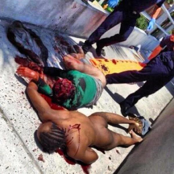 One man was shot to death by Miami police, and another man is fighting for his life after he was attacked, and his face allegedly half eaten, by a naked man on the MacArthur Causeway off ramp Saturday, police said.