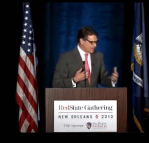 Entering himself among the throngs of politicians who’ve misidentified the state in which they are speaking, Gov. Rick Perry (R-TX) found himself being corrected by an audience this weekend when he mistakenly said he was in Florida. Speaking at conservative RedState Gathering in New Orleans this weekend, Perry asserted that his state of Texas has embodied the Republican Party’s values that he believes would make people’s lives better all across the nation.