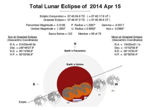 “It is the first of three eclipses that will be visible here in 2014. Another full lunar eclipse will occur Oct. 8, and the beginning of a partial solar eclipse can be seen from here on Oct. 23.”