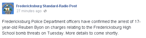 Curiously, there was also a bomb threat at Fredericksburg High School