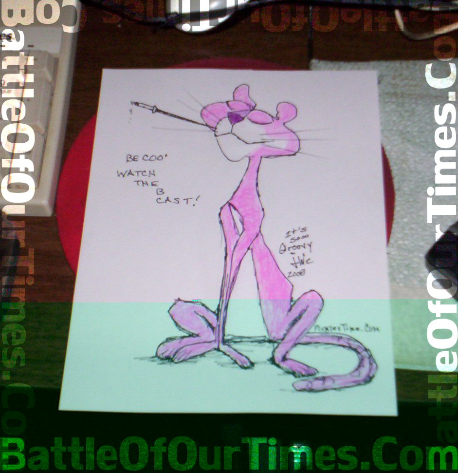 So I drew this Pink Panther,  sent it to Liz who had it framed and she gave it to Scott.