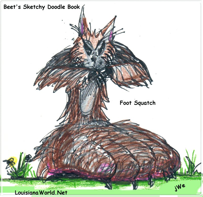Tagged Art, BattleOfOurTimes.Com, Beet's Sketchy Doodle Book, CENLA, Foot Squatch, Ink/Pencil, jWe, Louisiana, LouisianaWorld.Net, Serious Pickle, Squatchy